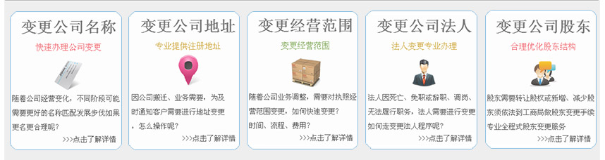 变更公司名称 变更公司股东(股权) 变更公司法人 变更公司地址 变更公司经营范围 变更公司注册资本